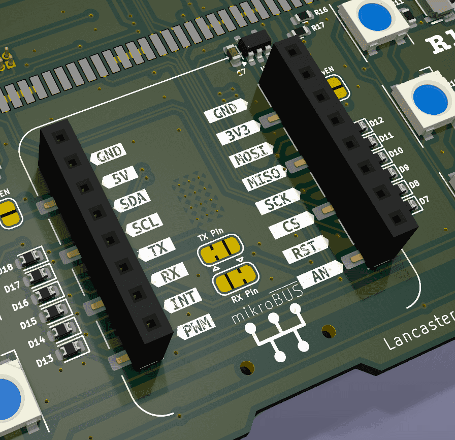 With the symbols prepared, transition to KiCAD’s footprint editor and locate the corresponding footprint for your part. In my case, I started with a standard through-hole variant, but found it necessary to create a custom surface-mount variant using offset pin headers to meet the assembly requirements. The specific mounting style you choose will depend on your manufacturing process and board design constraints.